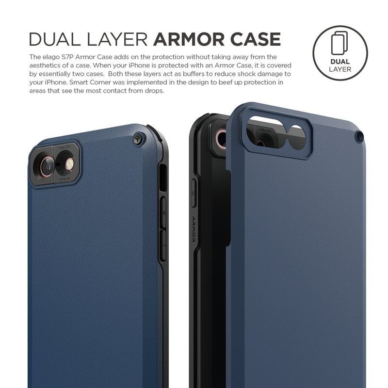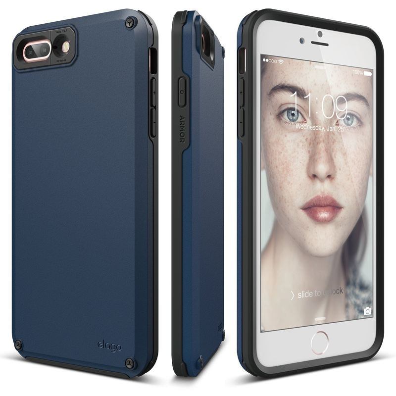 Elago Armor Case - хибриден кейс (поликарбонат + TPU) и HD покритие за iPhone 8 Plus, iPhone 7 Plus (син)
