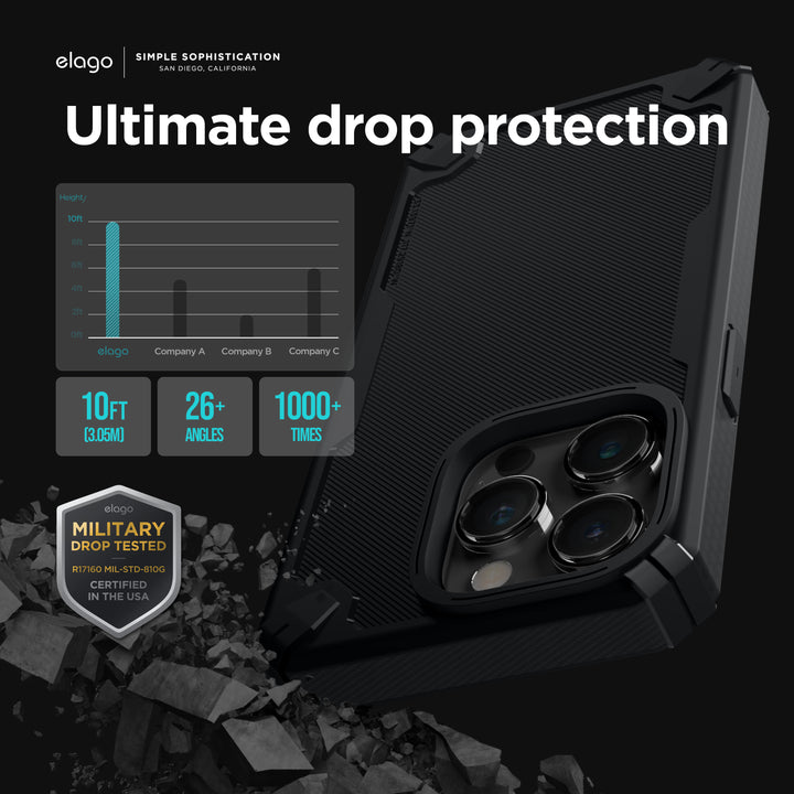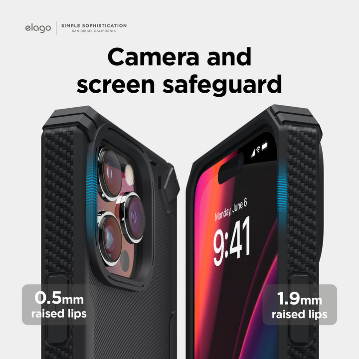 Elago Armor Case - удароустойчив силиконов (TPU) калъф за iPhone 14 Pro (черен)