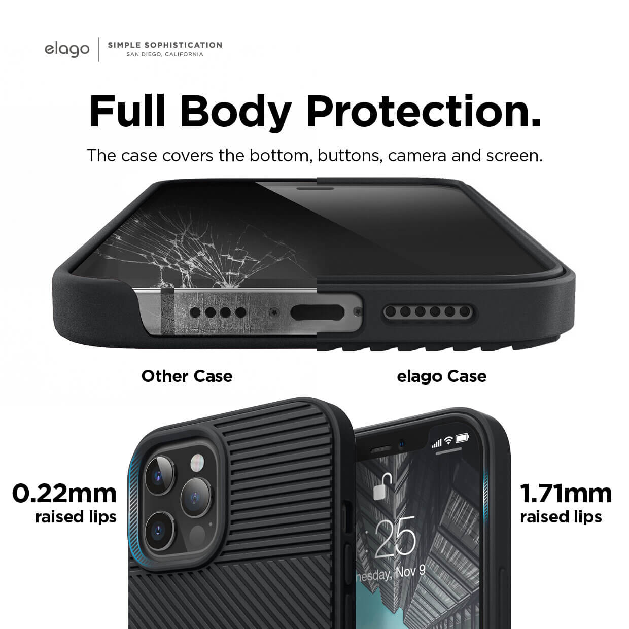 - Калъфът изпъква над камерата с 2.2 мм, което е напълно достатъчно за да оставяте безопасно телефона си по гръб и с 1.70 мм над дисплея, което пък ви позволява да го оставяте и по екран, без да се притеснявате, че повърхността ще има пряк допир с вашия телефон