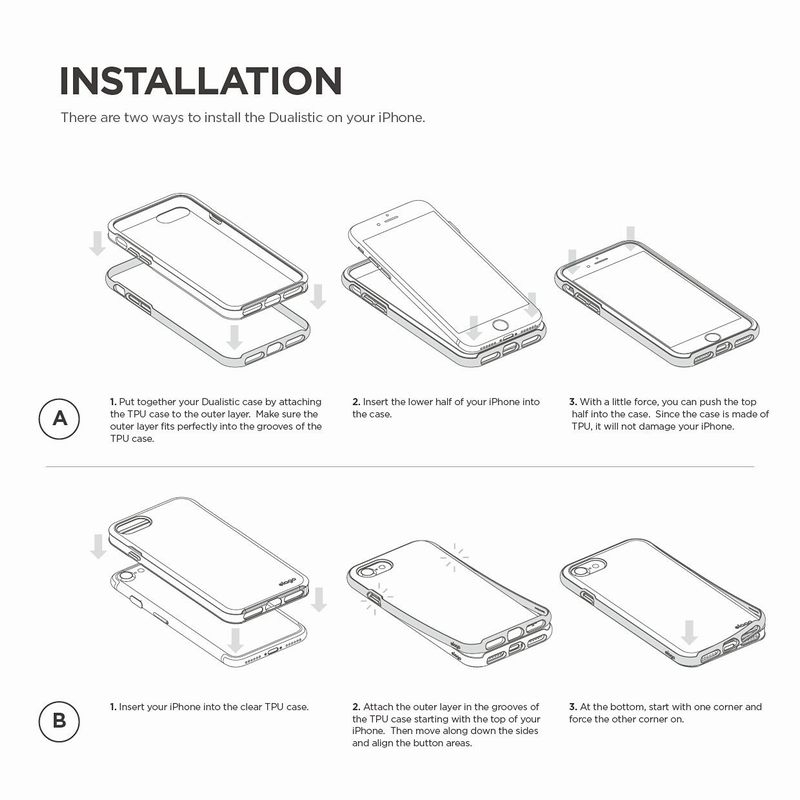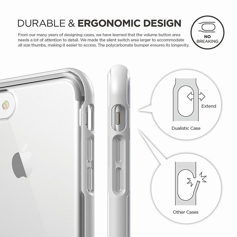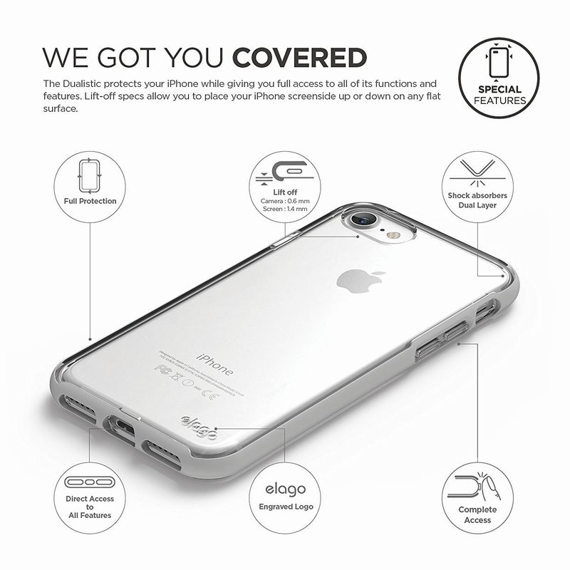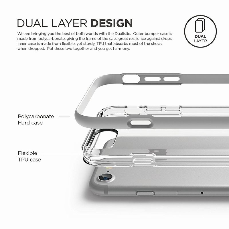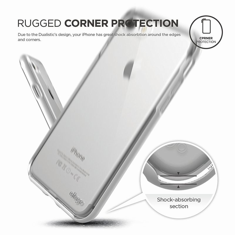 § Elago Dualistic е удароустойчив хибриден бъмпер-кейс, съставен от два материала: термополиуретан (TPU, силикон) и екологично чист поликарбонат Lexan polycarbonate