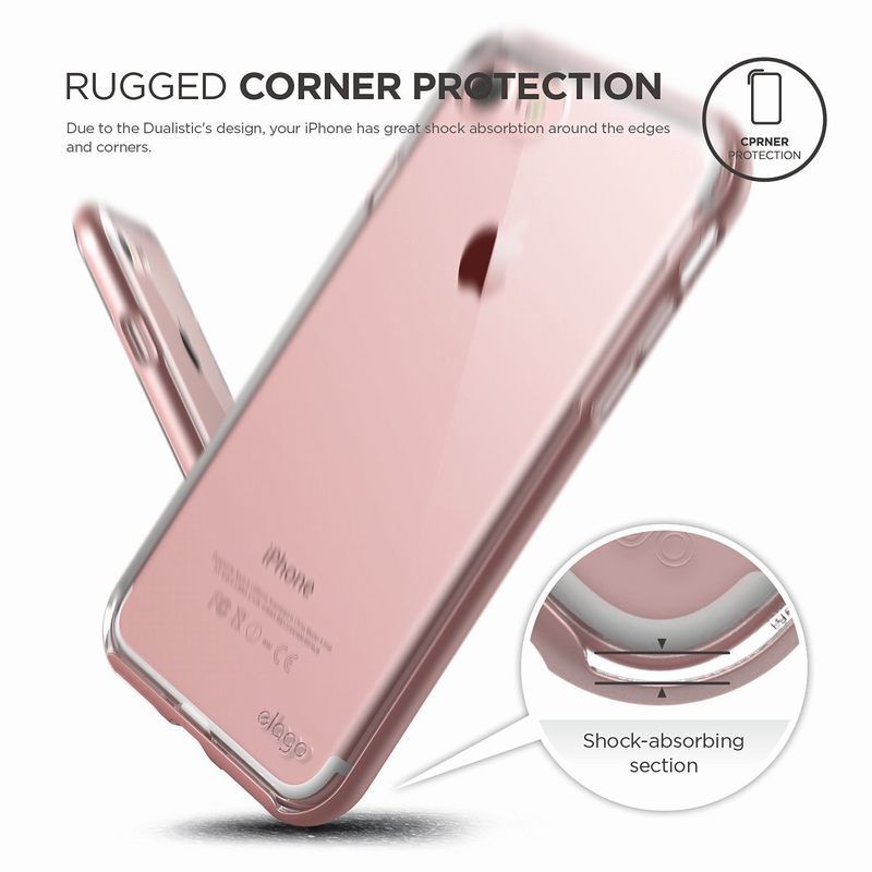 Elago Dualistic Case - хибриден кейс (поликарбонат + TPU) и HD покритие за iPhone 8, iPhone 7 (розово злато)