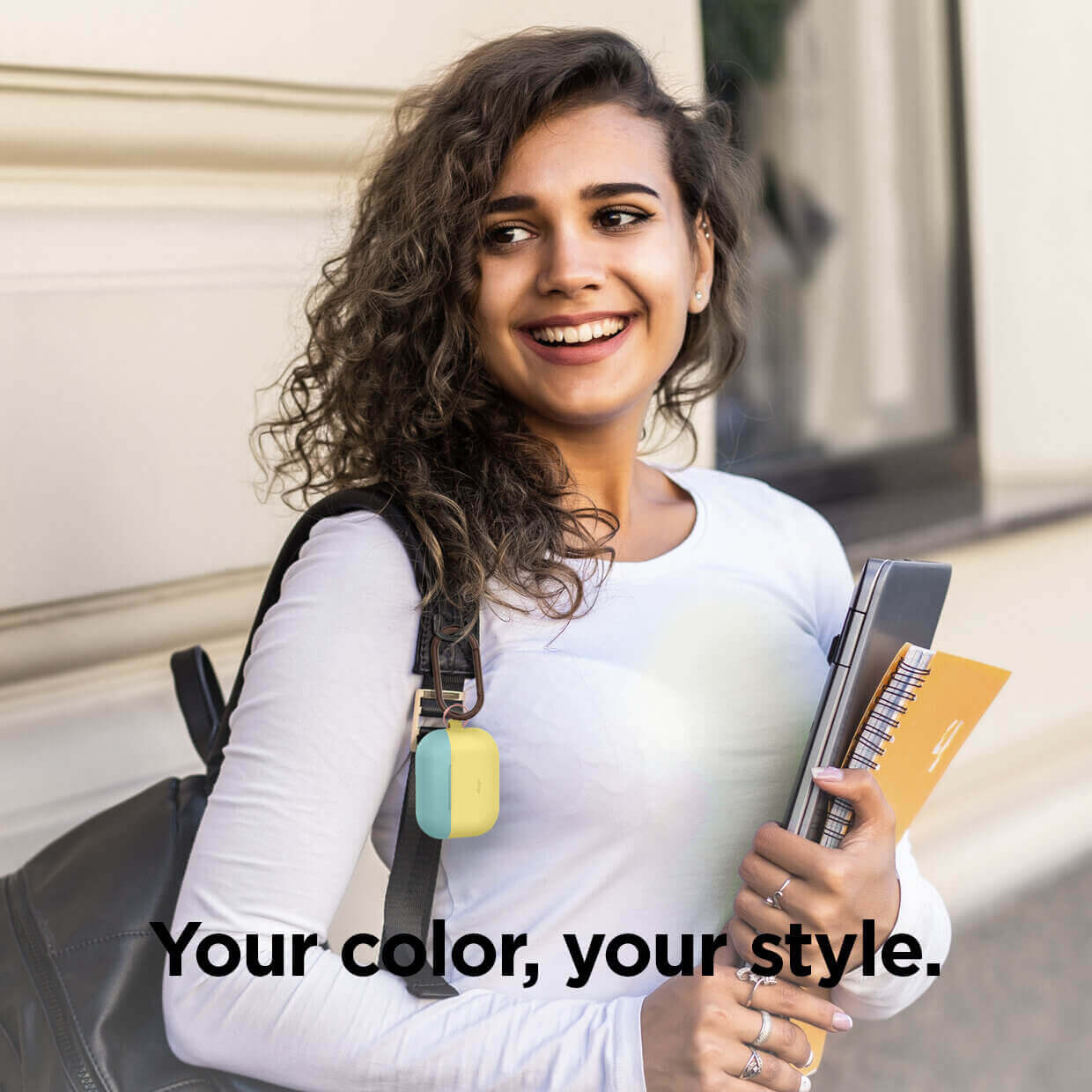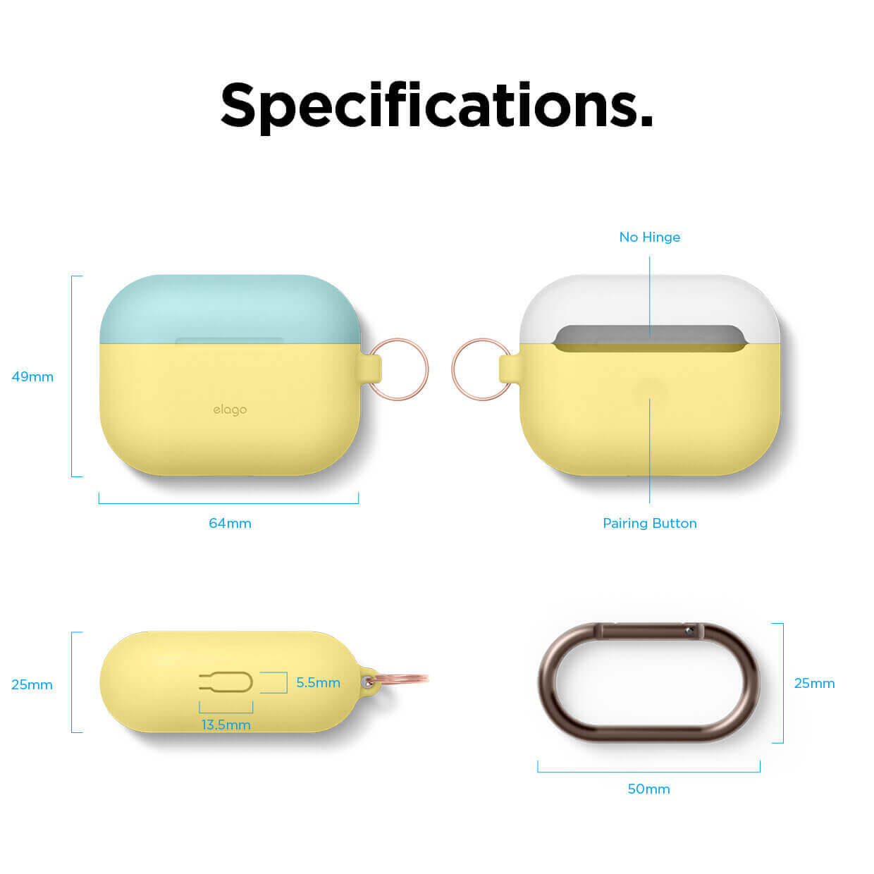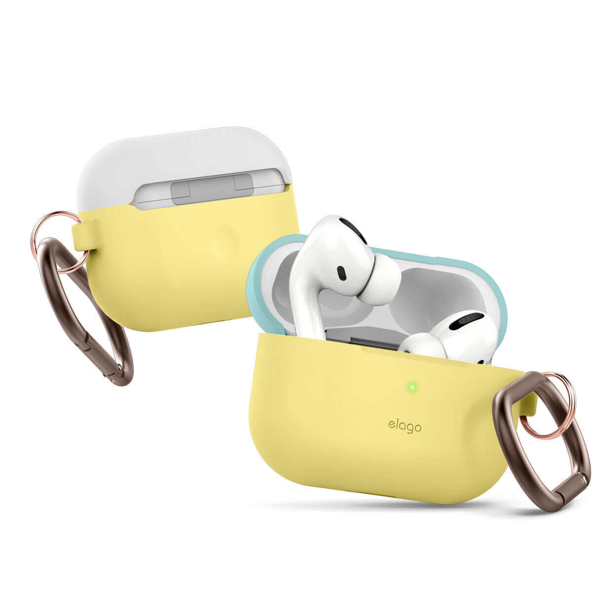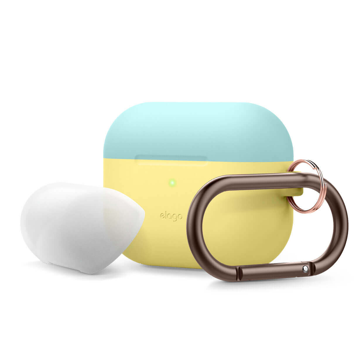 - 1 x Elago Duo Hang Silicone Case - долна част (жълта) - 2 x Elago Duo Hang Silicone Case - горна част (светлосиня и бяла-фосфоресцираща) - 1 x Elago Carabiner