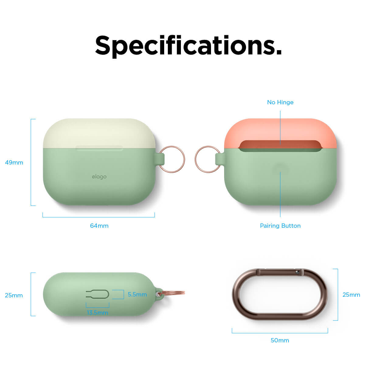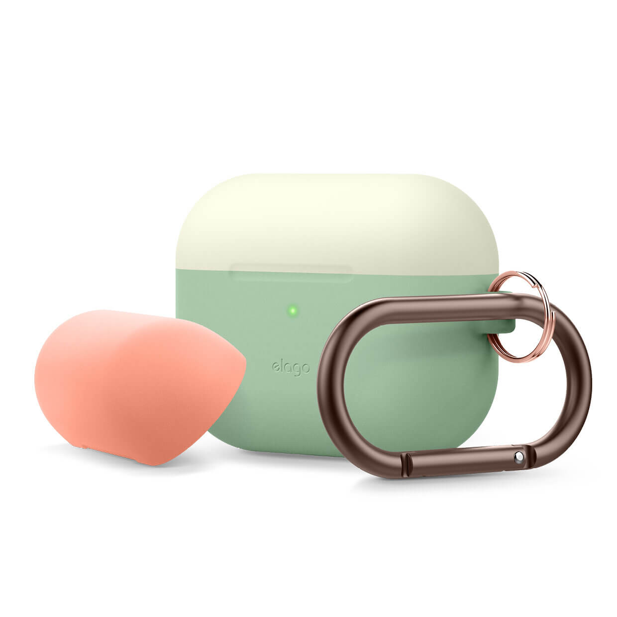 - 1 x Elago Duo Hang Silicone Case - долна част (зелена) - 2 x Elago Duo Hang Silicone Case - горна част (бяла и оранжева) - 1 x Elago Carabiner