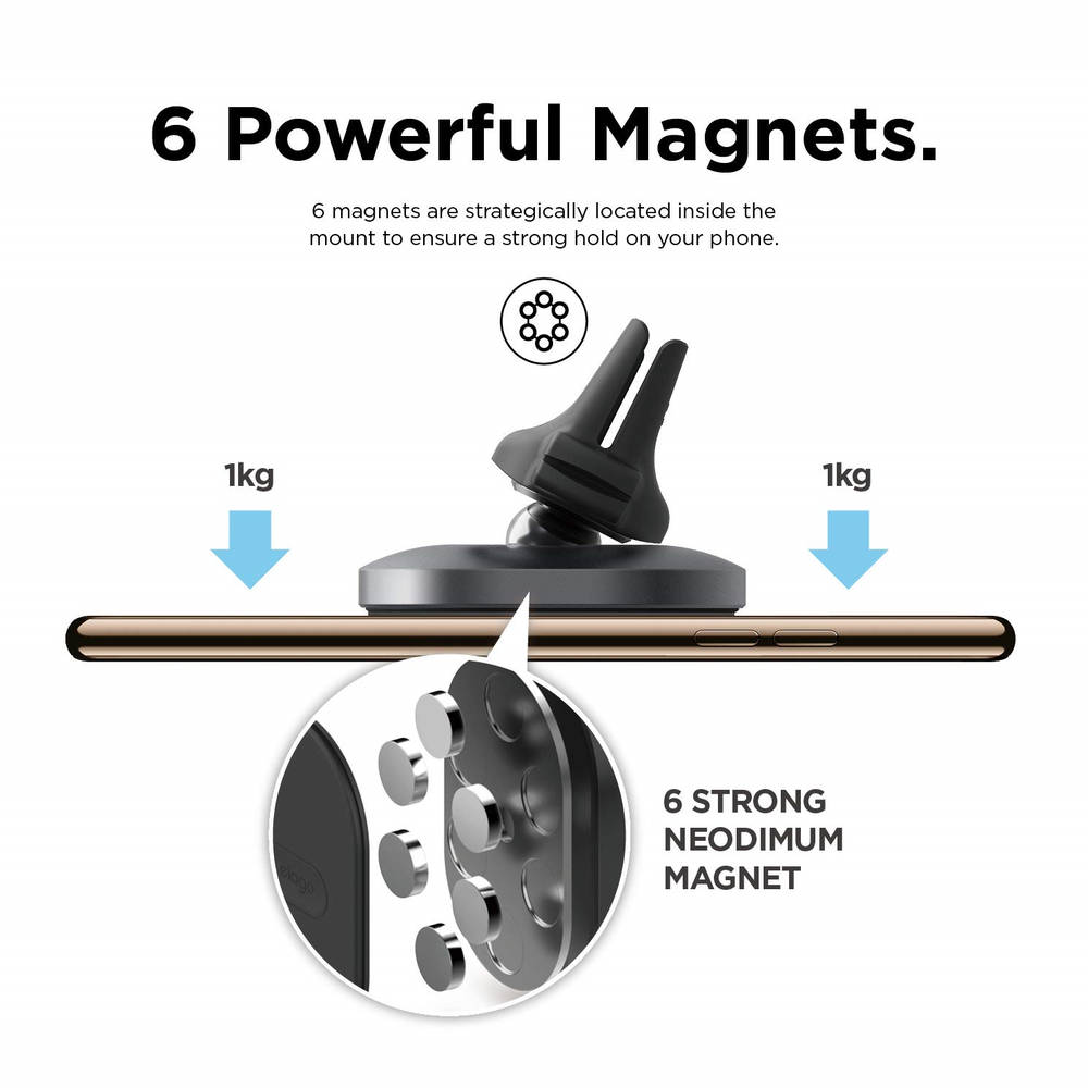 Elago Hexa Magnetic Aluminum Car Mount - алуминиева магнитна поставка за радиатора на кола за смартфони (черна)