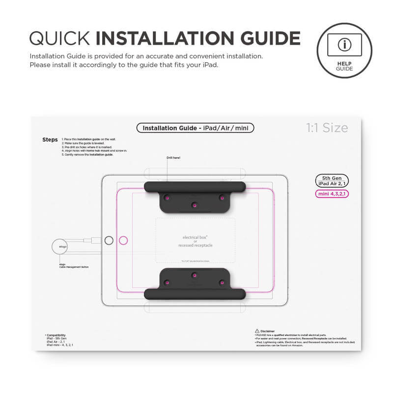 § Включена детайлна схема, която може да се наложи на стената, там където искаш да монтираш поставката, за да пробиеш на точните места в зависимост от таблета, който ще поставяш