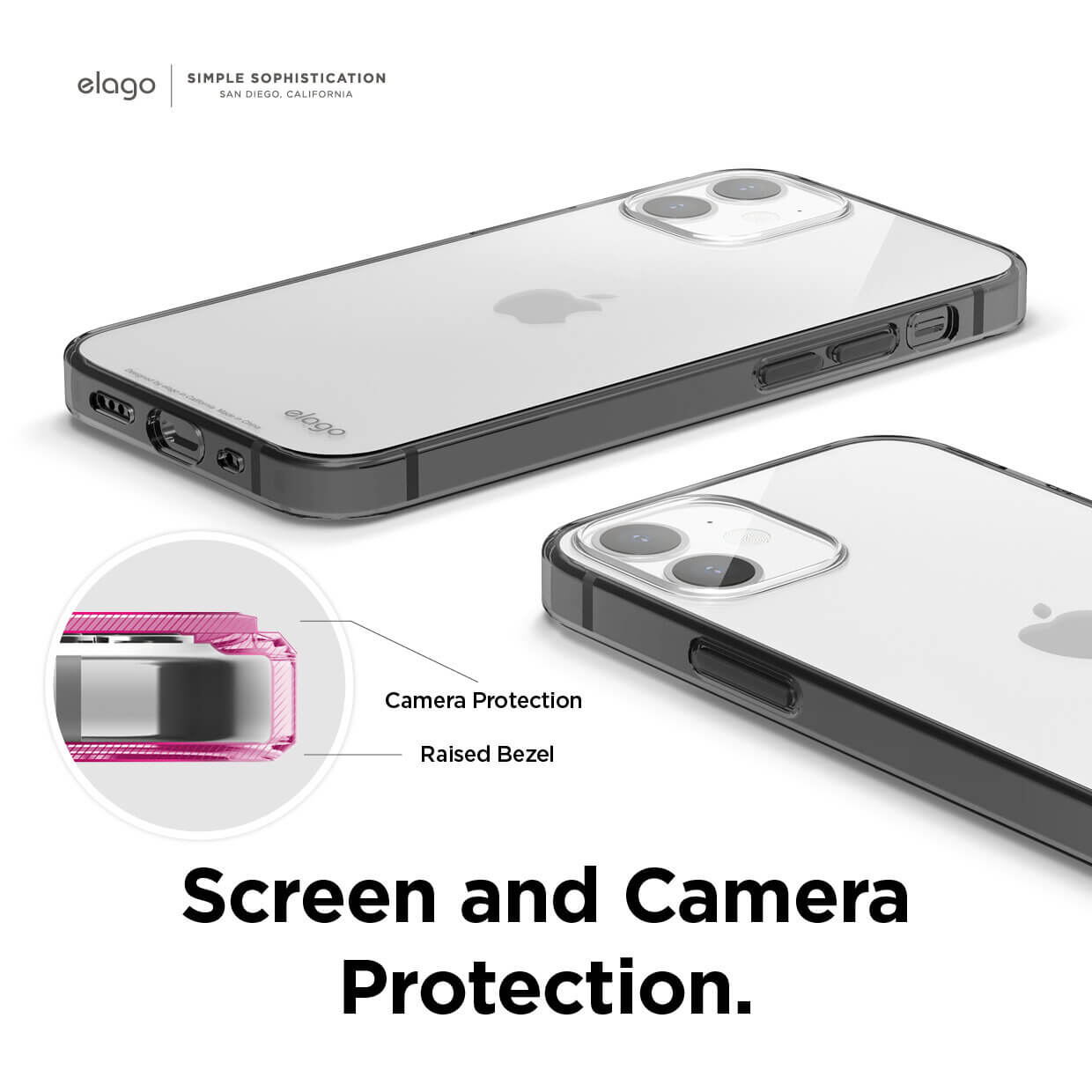 - Повдигнатият ръб около камерата помага за защита срещу драскотини и пряк контакт с повърхността