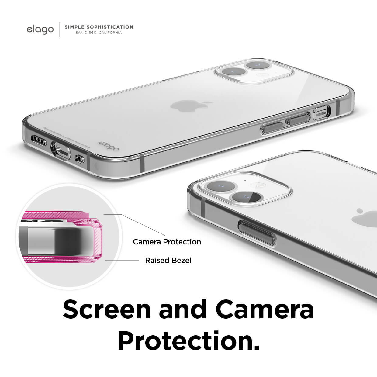 - Повдигнатият ръб около камерата помага за защита срещу драскотини и пряк контакт с повърхността