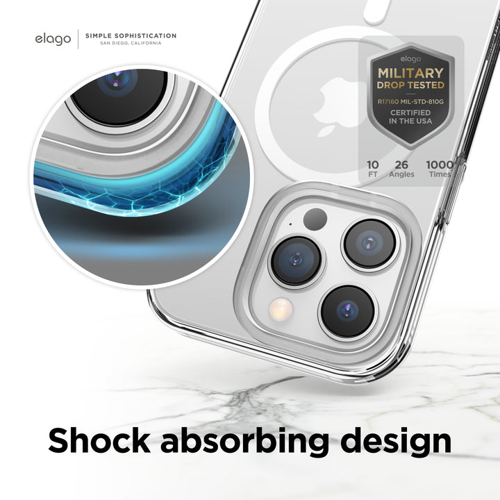 - MagSafe функционалност - кейсът е свграден магнит, благодарение на който е съвместим с всички MagSafe аксесоари.По този начин лесно с едно докосване свързвате безжично зарядно или друг MagSafe аксесоар