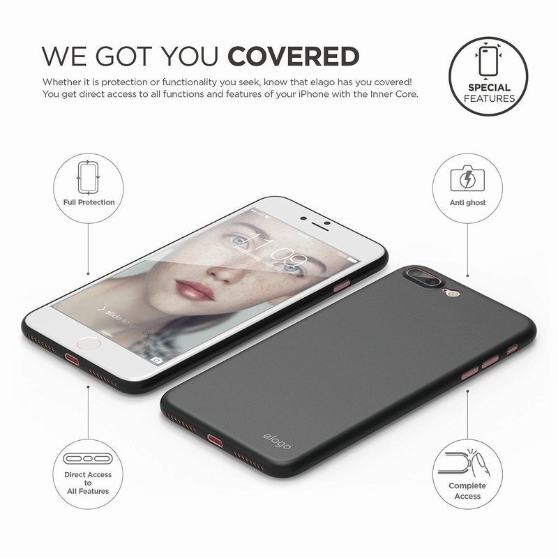 § Elago Inner Core е с тегло едва 4 грама и дебелина 0.4 мм, когато го поставиш на iPhone 7 Plus общата дебелина е точно 7.7 мм. Това не е ли страхотно!