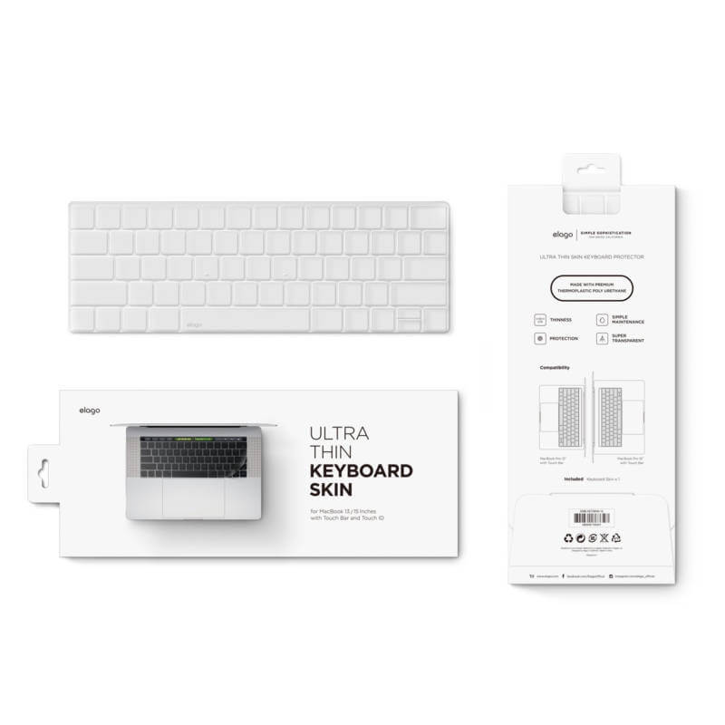 Elago Keyboard Skin - силиконов протектор за клавиатурата на MacBook Pro with Touch Bar (прозрачен-мат)