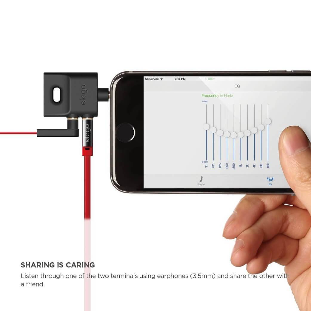 Elago Keyring Splitter - аудио разклонител (сплитер) за мобилни устройства с 3.5 мм стерео-жак (черен)