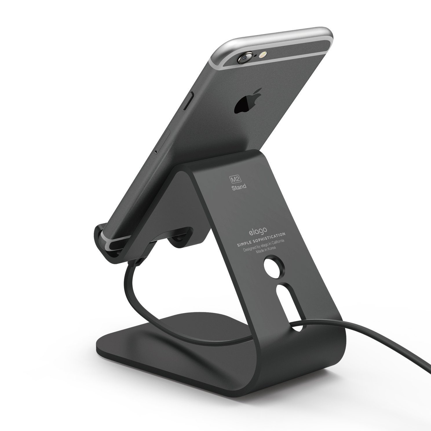 Elago M2 Stand - алуминиева поставка за iPhone 6/6S, 6 Plus/6S Plus, iPhone SE/5/5S/5C и мобилни телефони (черна)