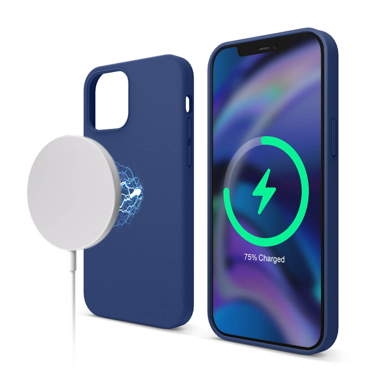 Elago MagSafe Soft Silicone Case - силиконов (TPU) калъф с вграден магнитен конектор (MagSafe) за iPhone 12, iPhone 12 Pro (тъмносин)