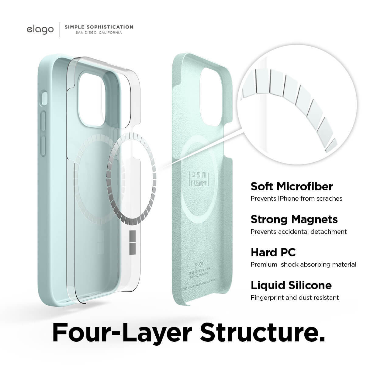 - Калъфът е снабден с магнит, благодарение на който е съвместим с MagSafe аксесоари. Това е изцяло нов стандарт за бързо и лесно свързване на аксесоари и безжични зарядни устройства
