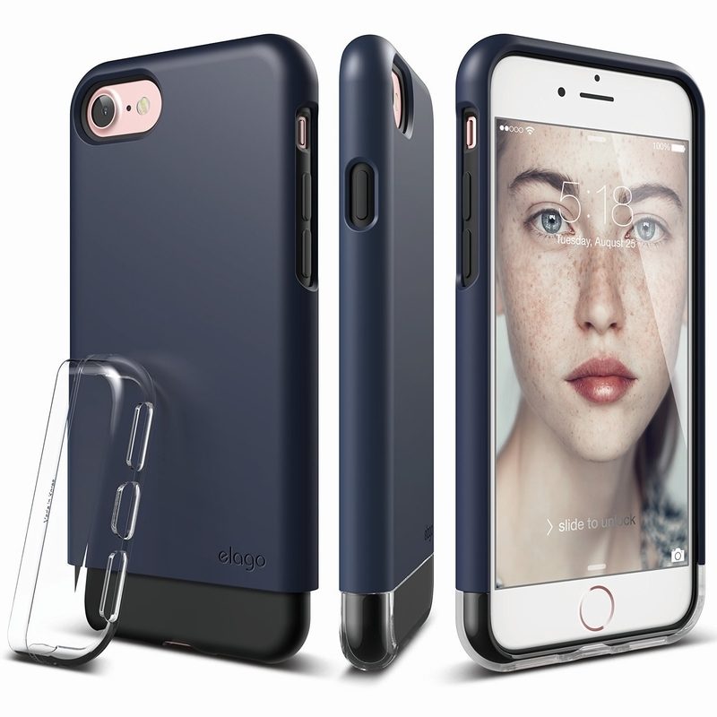 Elago S7 Glide Case + HD Clear Film - поликарбонатов кейс и HD покритие за iPhone 8, iPhone 7 (тъмносин-прозрачен)