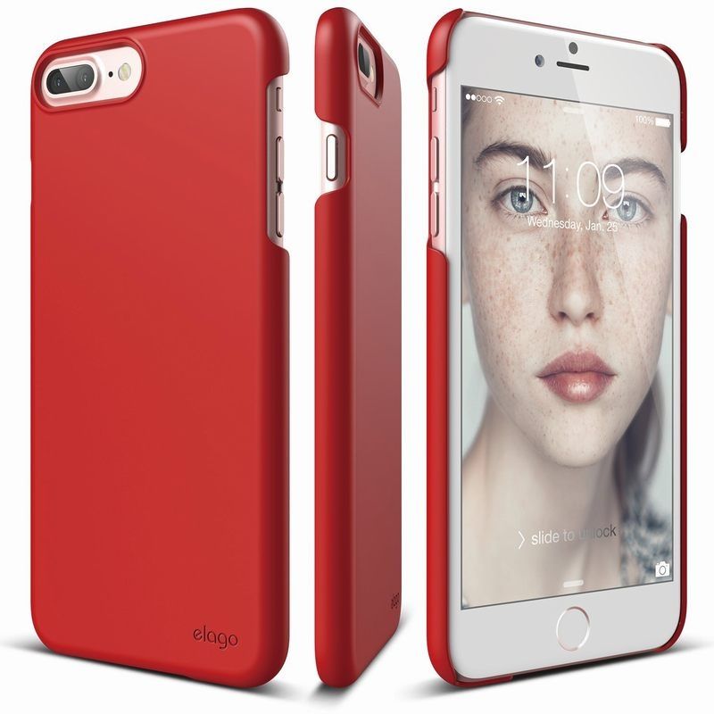 Elago S7 Slim Fit 2 Case + HD Clear Film - поликарбонатов кейс и HD покритие за iPhone 8 Plus, iPhone 7 Plus (червен)