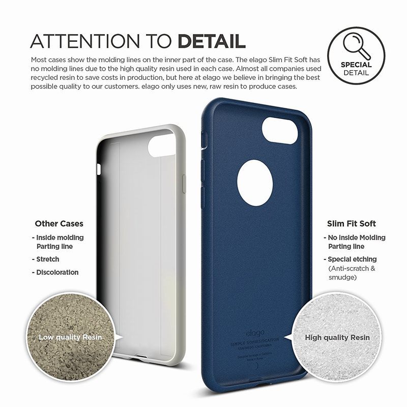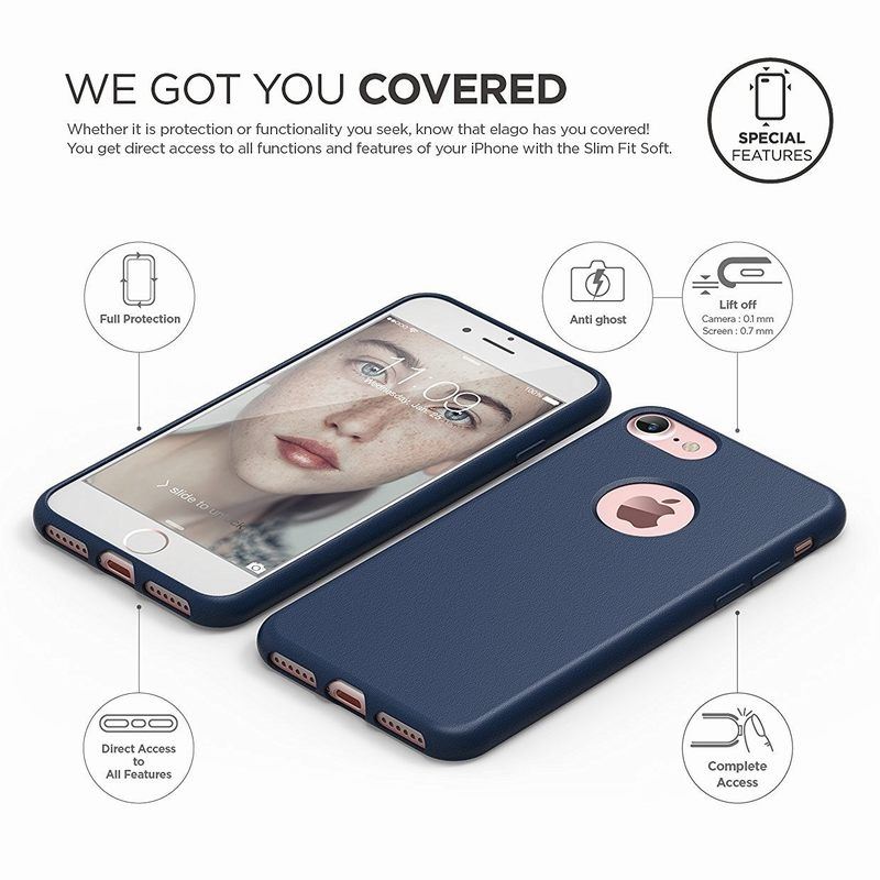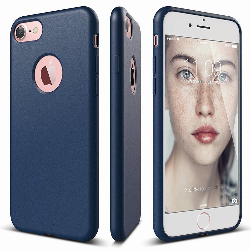 Elago S7 Slim Fit Soft Case + HD Clear Film - тънък силиконов калъф и HD покритие за iPhone 8, iPhone 7 (тъмносин-мат)