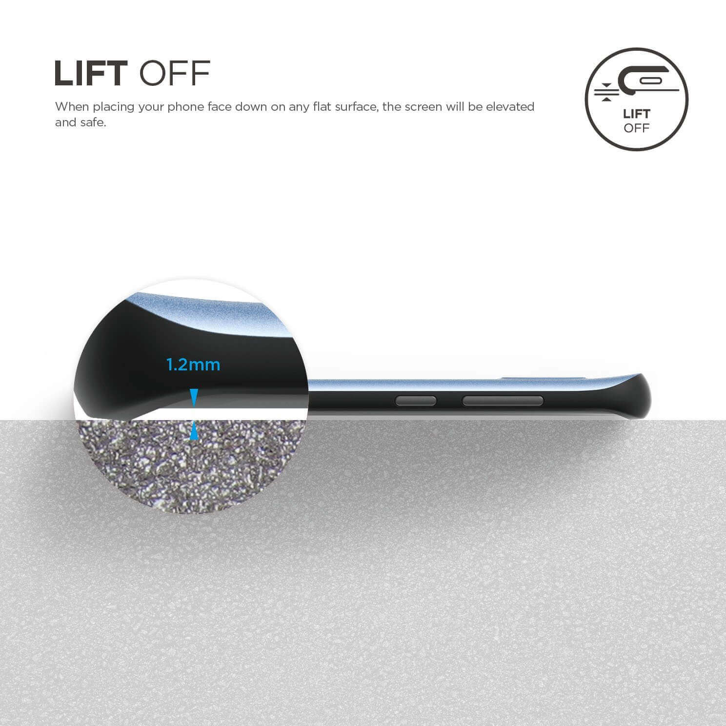 § Този кейс разполага с т. нар. Edge функционалност, като ръбовете му са издадени с 1 мм над самия дисплей, но освен това, в задната част калъфа е издаден с около 0,6 мм над самата камера, за да оставяш спокойно устройството, от която и да е страна и да си спокоен, че няма да получиш драскотини