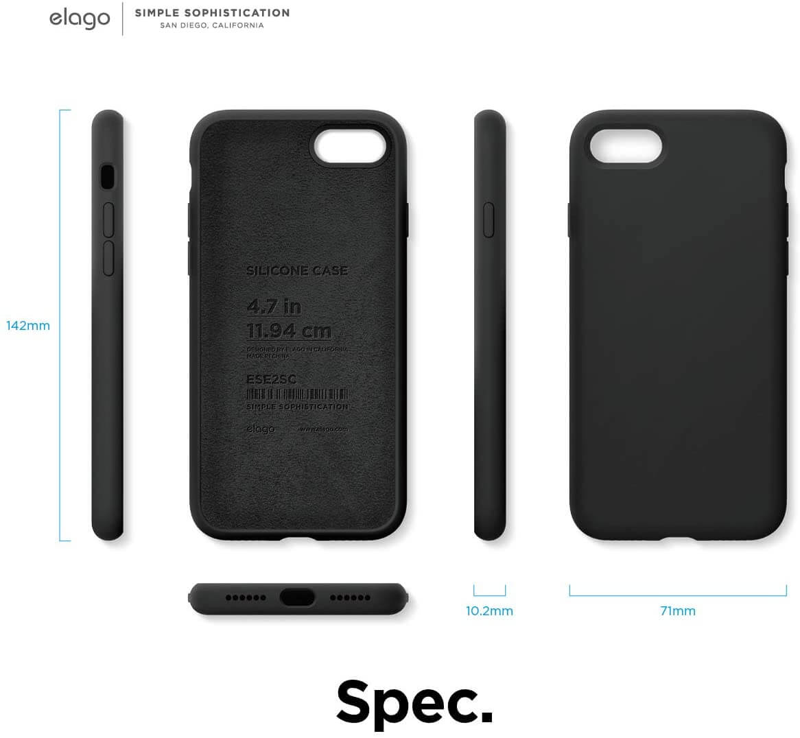 Elago Silicone Case - качествен силиконов (TPU) калъф за iPhone SE (2020), iPhone 8, iPhone 7 (черен)