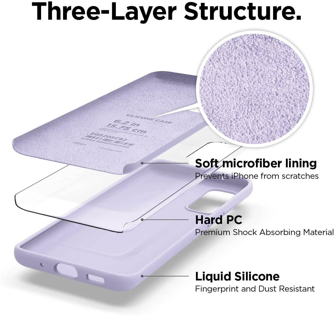 - Трислойна структура - мек силикон, твърд поликарбонат и мек микрофибър