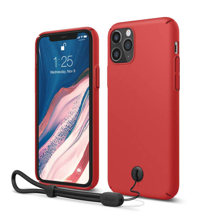 Elago Slim Fit Strap Case - качествен поликарбонатов кейс с каишка за китката за iPhone 11 Pro Max (червен)