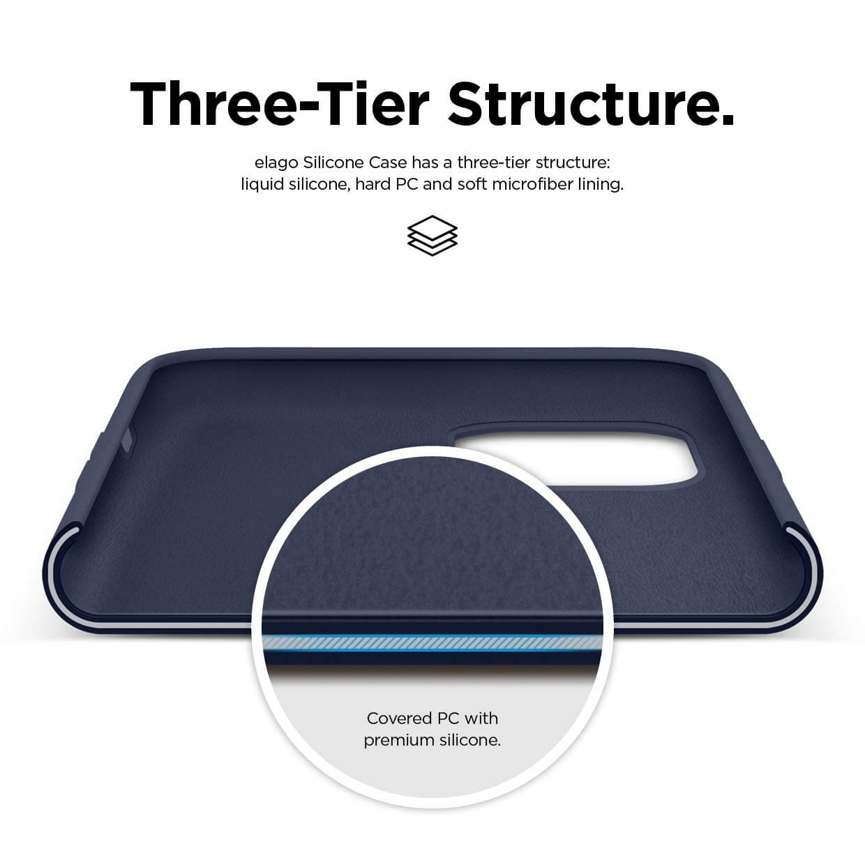 - Трислойна структура - мек силикон, твърд поликарбонат и мек микрофибър