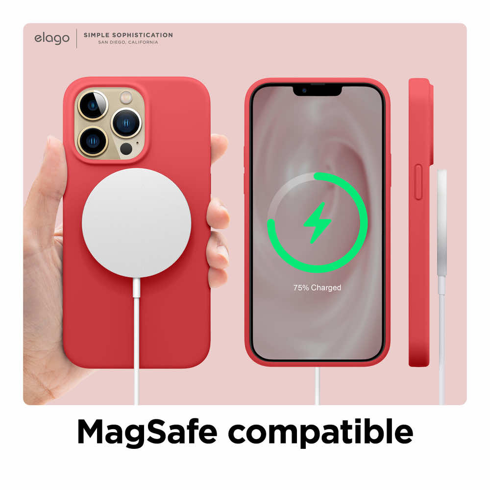 - Възможност за безжично зареждане на телефона с Apple MagSafe Charger, докато е в калъфа