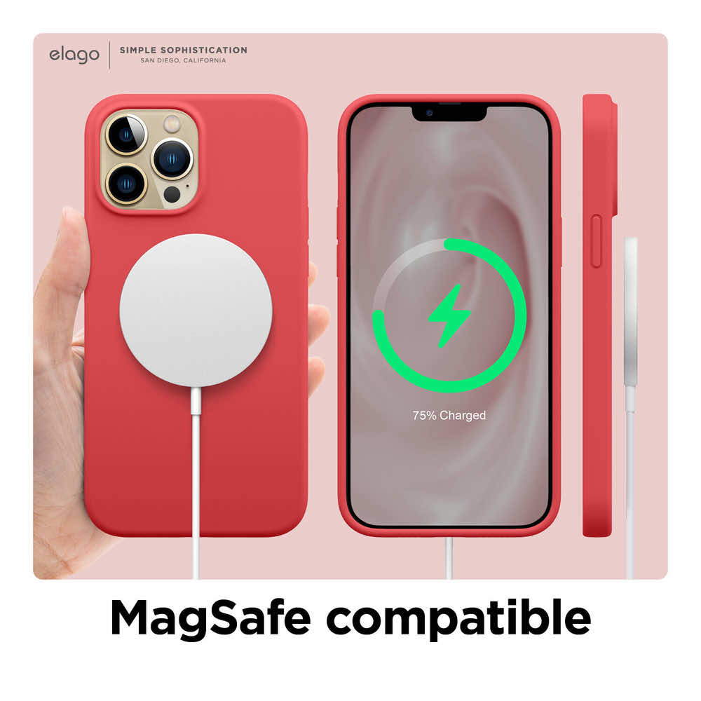 - Възможност за безжично зареждане на телефона с Apple MagSafe Charger, докато е в калъфа