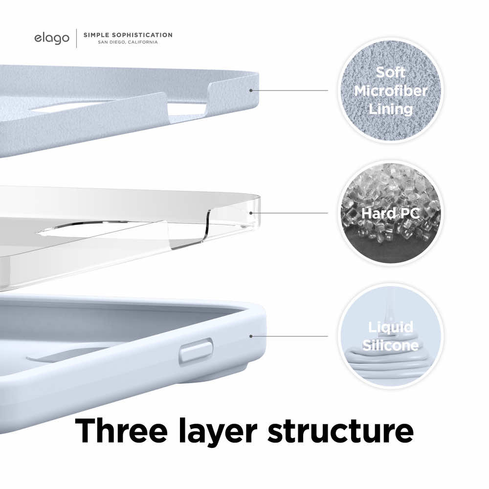 - Трислойна структура - мек силикон, твърд поликарбонат и мек микрофибър
