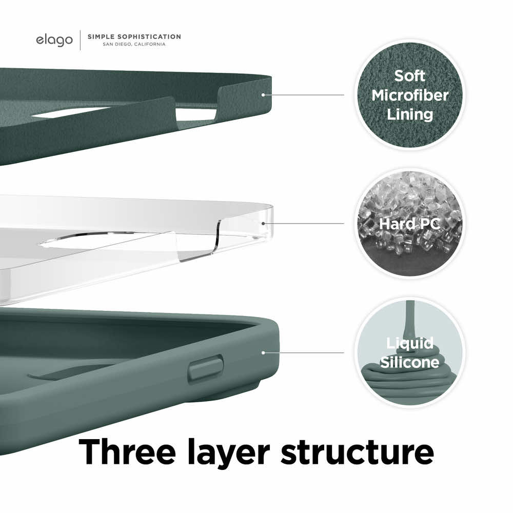 - Трислойна структура - мек силикон, твърд поликарбонат и мек микрофибър