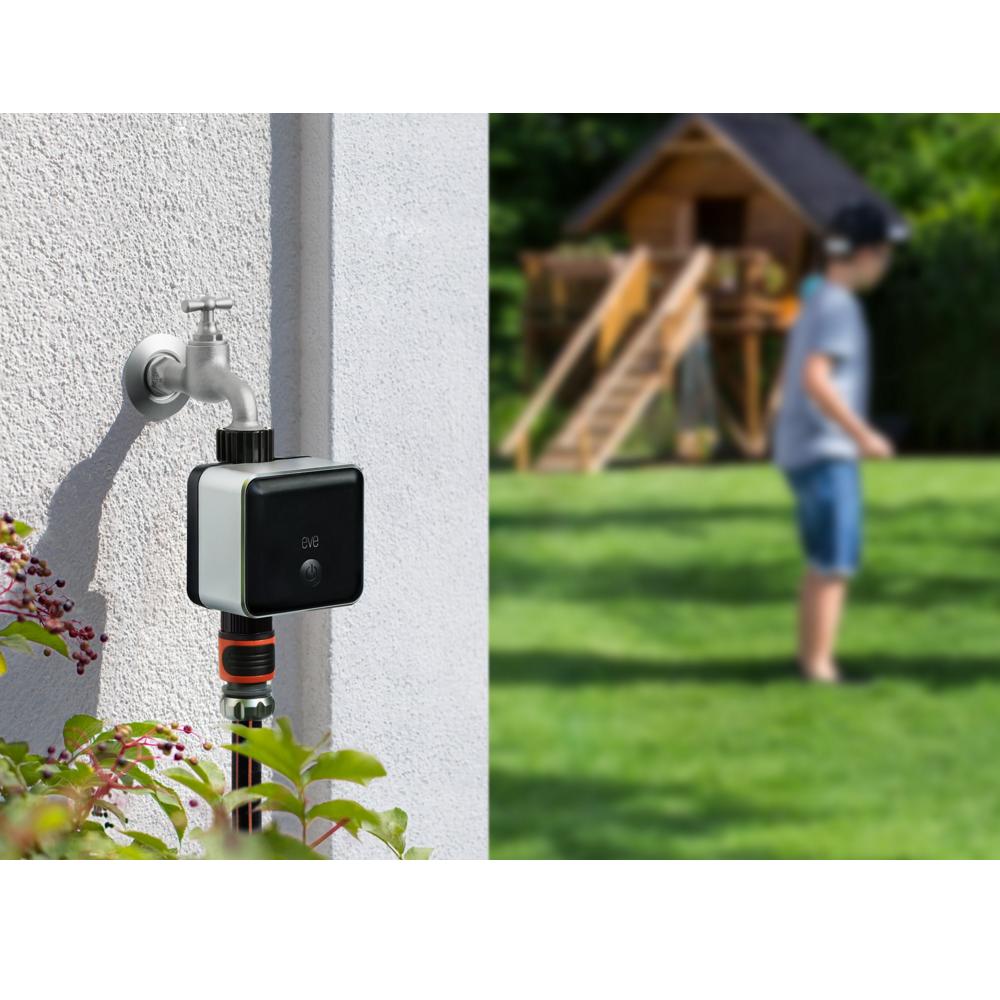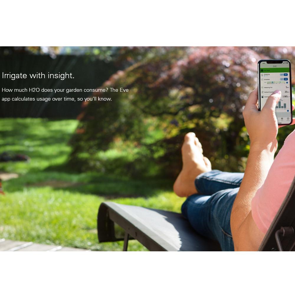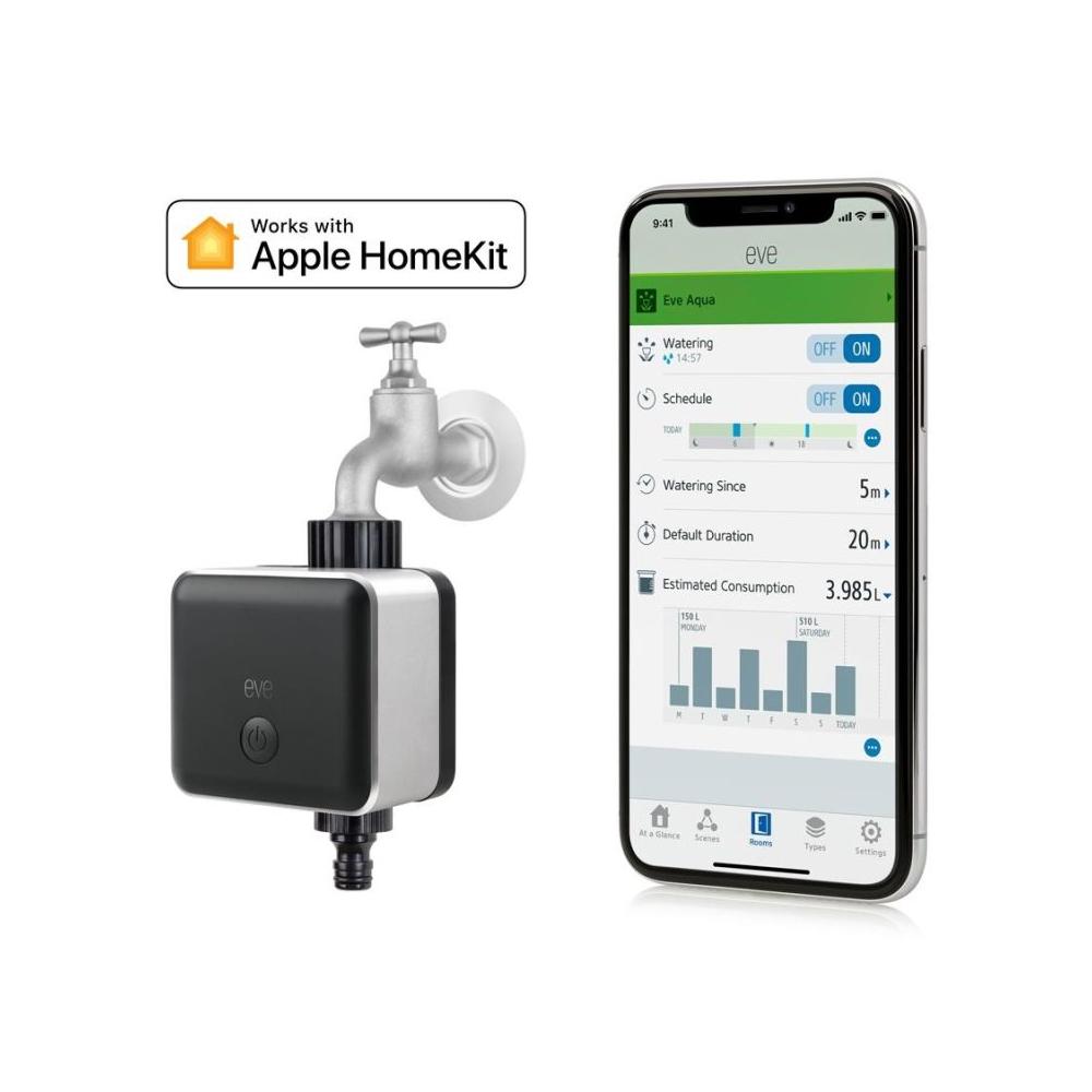 - Можете да поливате с едно натискане на вградения бутон, но е още по-впечатляващо да контролирате Eve Aqua с вашия iPhone, iPad, Apple Watch и дори с гласови команди през Siri