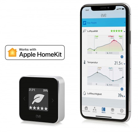 - Вътрешният въздух може да бъде пет пъти по-мърсен, отколкото този на открито. Но с Eve Room вие и вашите близки можете да дишате чист въздух, да се чувствате в безопасност и да живеете здравословно