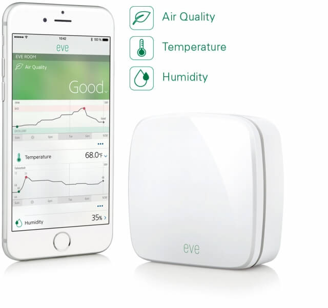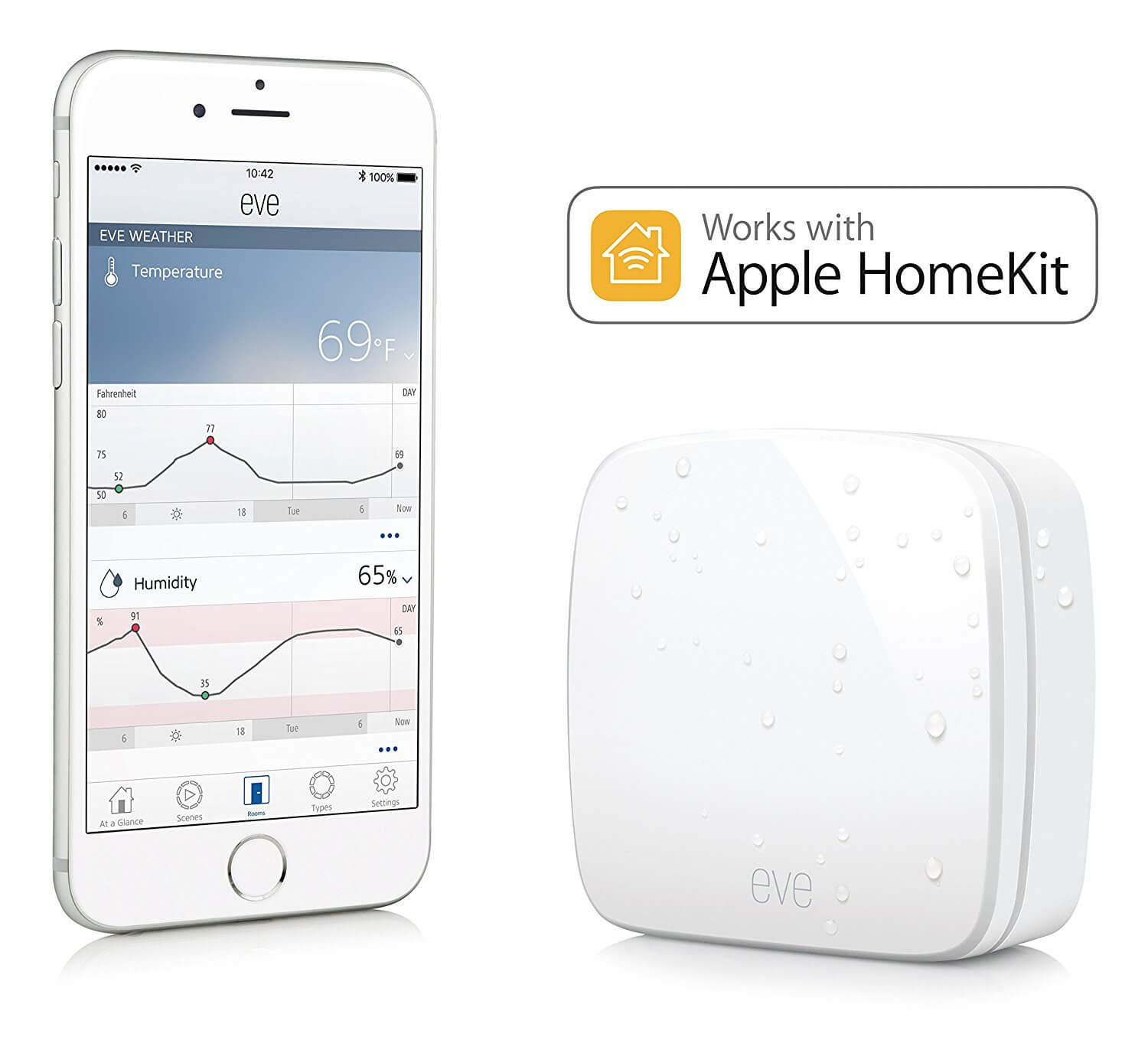 - Elgato Eve Weather усеща температурата, влажността и въздушното налягане в непосредствена близост до дома ви и прави метеорологични данни за времето, достъпни чрез безплатно приложение на вашия iPhone или iPad