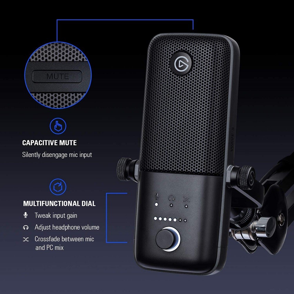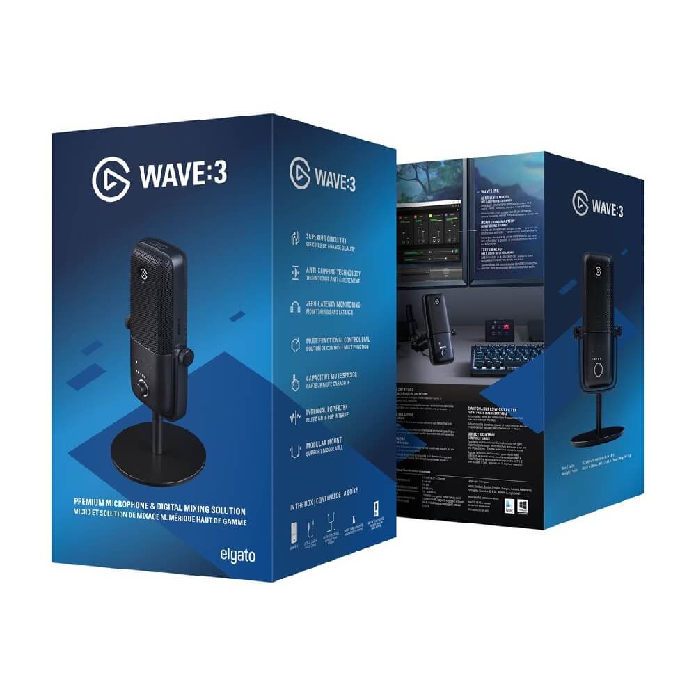 - Еlgato Wave:3 е кондензаторният микрофон, който ще ви помогне да постигнете студийно ниво на звука си, обединявайки plug & play възможности заедно с невероятно качество на аудиото и виртуален миксер, за смесване на нужните звуци за вашите стриймове
