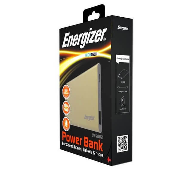 Energizer HighTech Power Bank 4000 mAh - преносима външна батерия с USB-A изход за зареждане на мобилни устройства (златист)