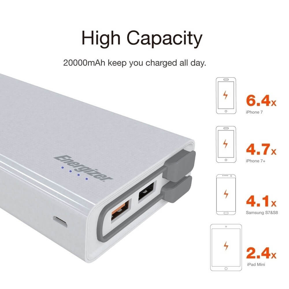 - Зареждайте до 8 пъти напълно батерията на вашият телефон с един заряд на външната батерия Energizer