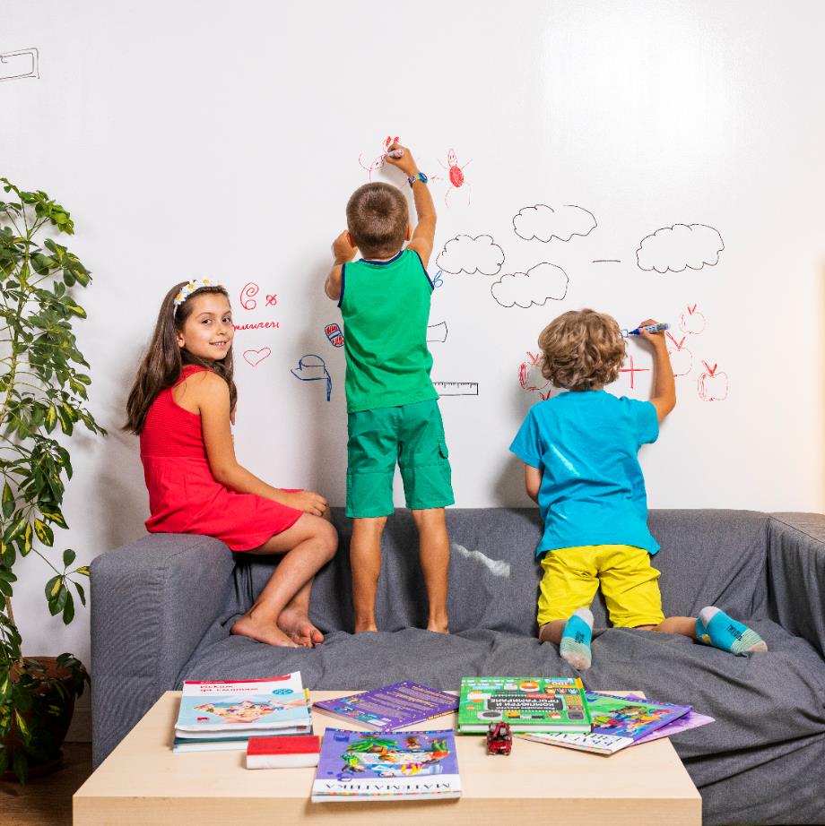 - да оптимизираш всяка гладка повърхност като маса, бюро, гардероб или колона и я превърнеш в място за визуализиране на идеи - да стимулираш творчеството у своите деца със стена за писане и рисуване в детската стая - да записваш рецепти и напомнянки в кухнята - да се забавляваш, толкова е лесно
