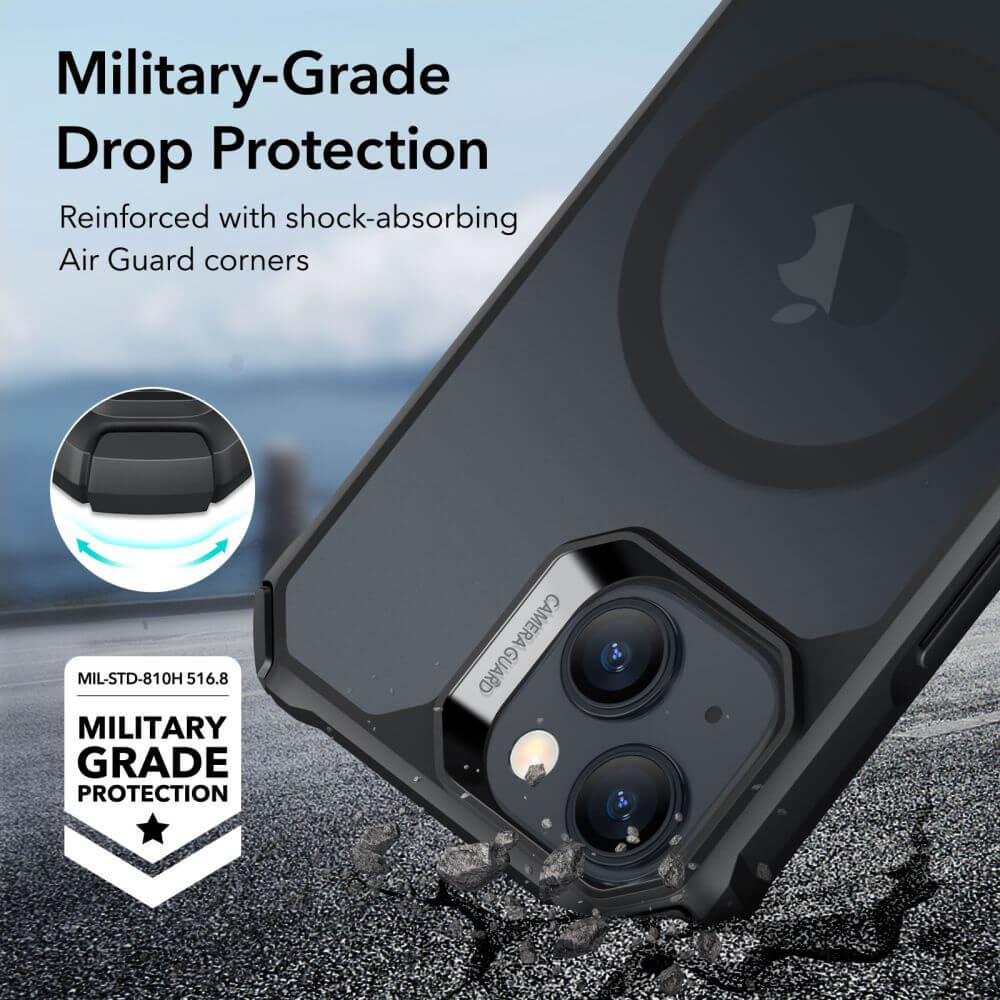 ESR Air Armor HaloLock MagSafe Case - хибриден удароустойчив кейс с MagSafe за iPhone 15 (черен-мат)