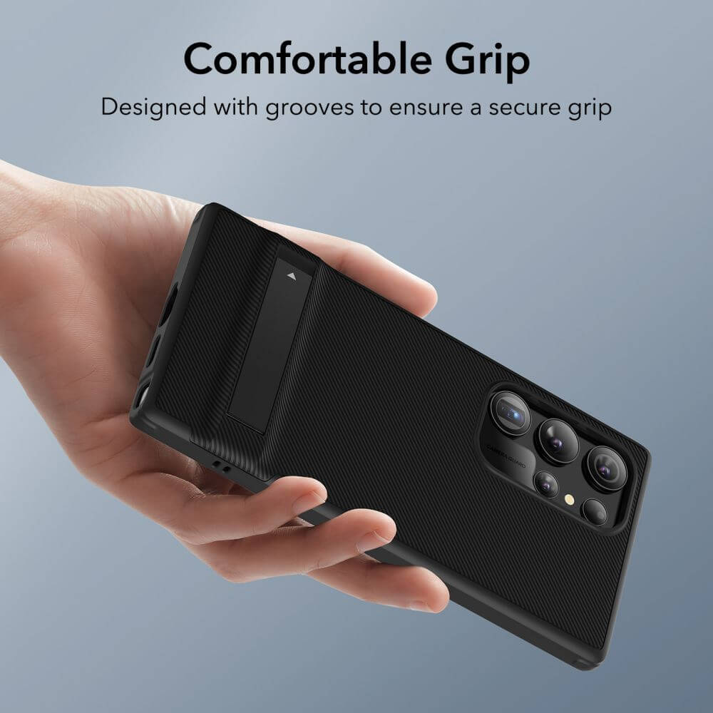 ESR Air Shield Boost Case - удароустойчив хибриден кейс с вградена поставка за Samsung Galaxy S24 Ultra (черен)