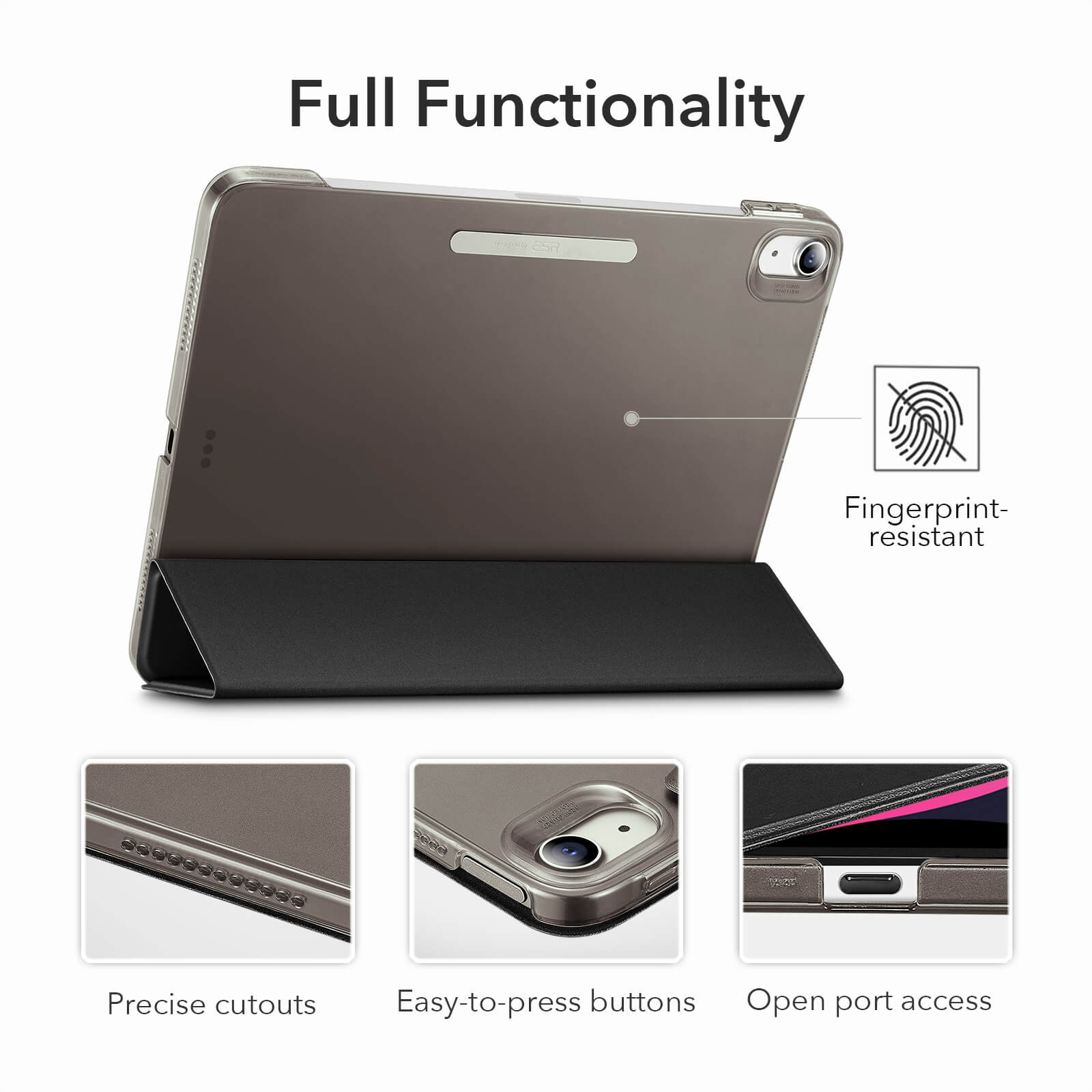 ESR Ascend Trifold Case - полиуретанов калъф с поставка и отделение за Apple Pencil 2 за iPad Air 4 (2020) (черен)