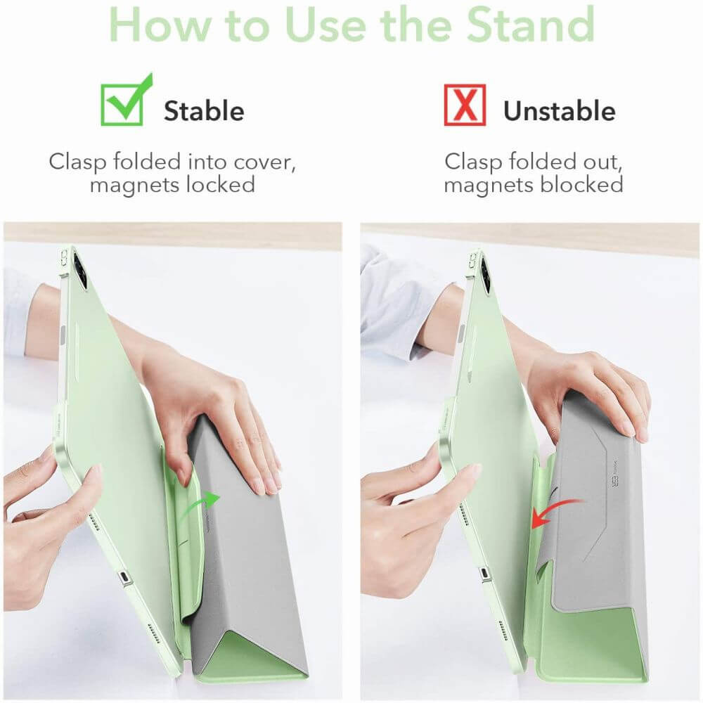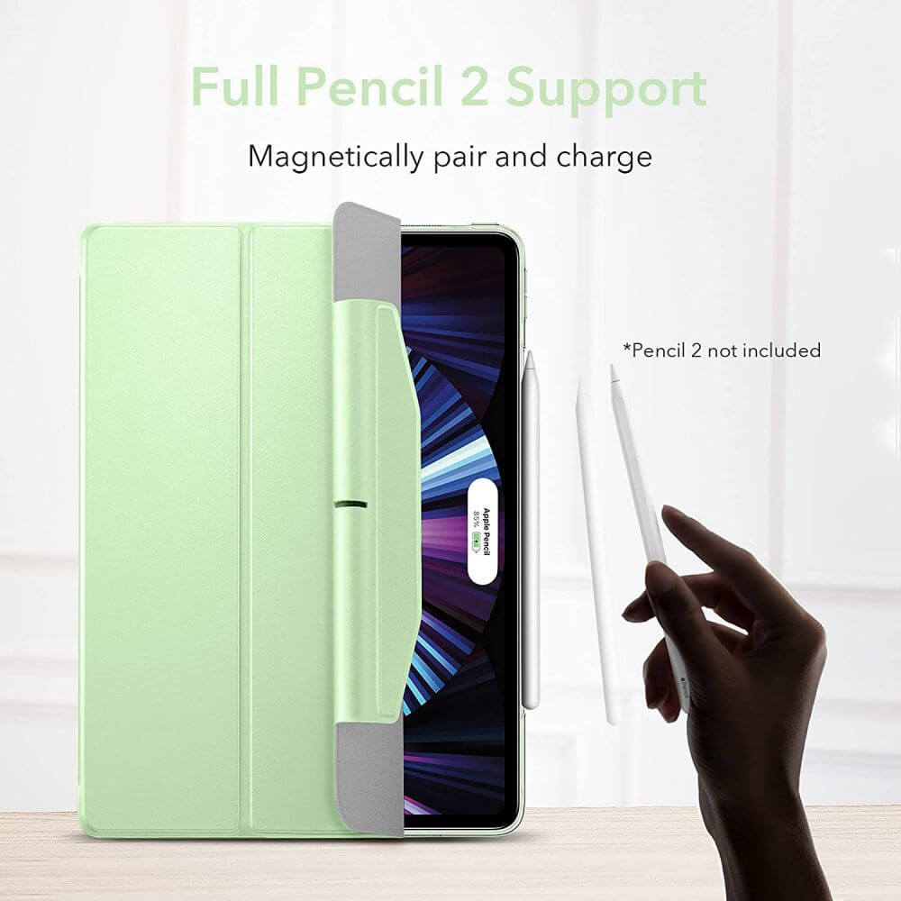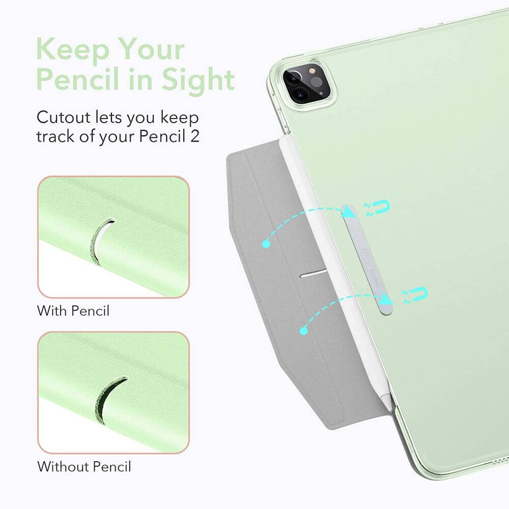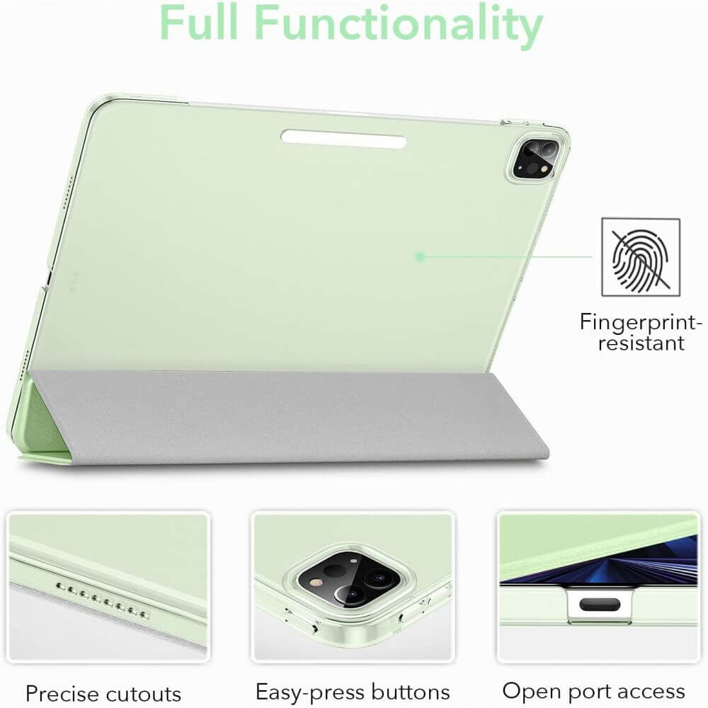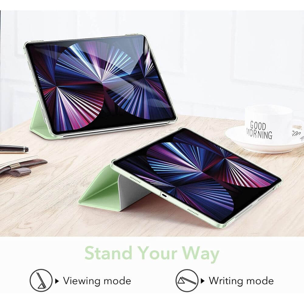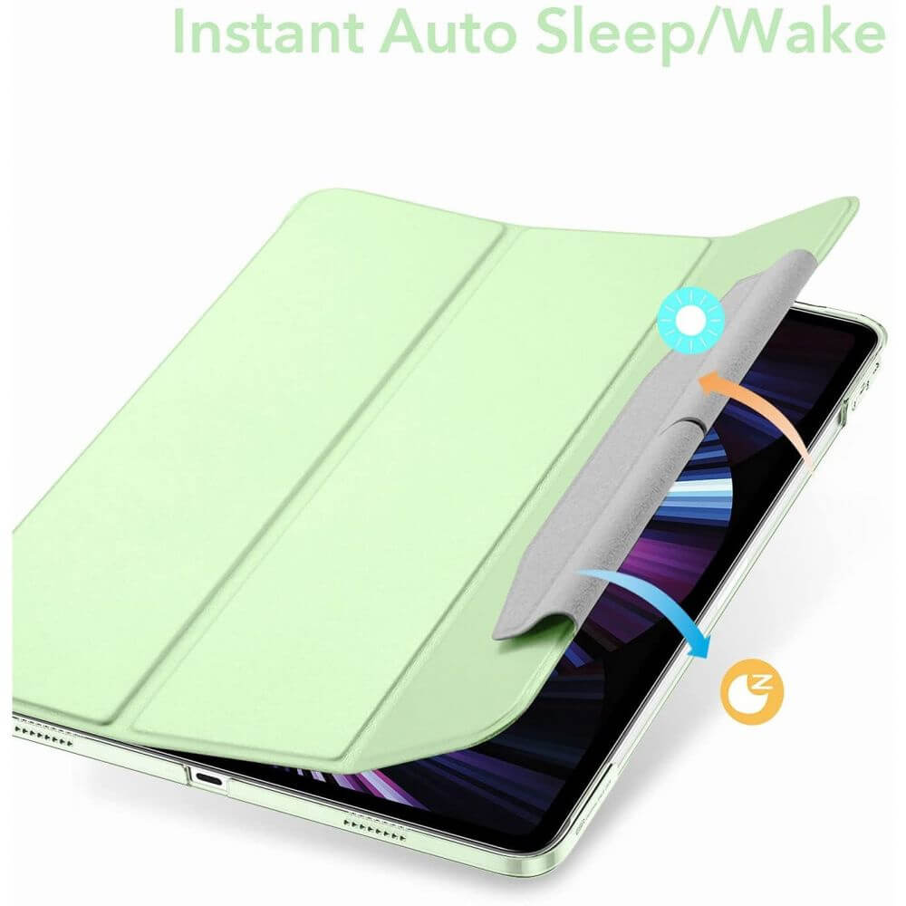 ESR Ascend Trifold Case - полиуретанов калъф с поставка и отделение за Apple Pencil 2 за iPad Pro 11 M1 (2021) (светлозелен)