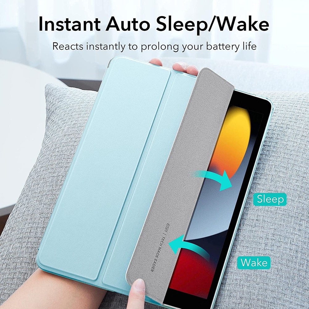 ESR Ascend Trifold Case - полиуретанов калъф с поставка за iPad 9 (2021), iPad 8 (2020), iPad 7 (2019) (светлосин)