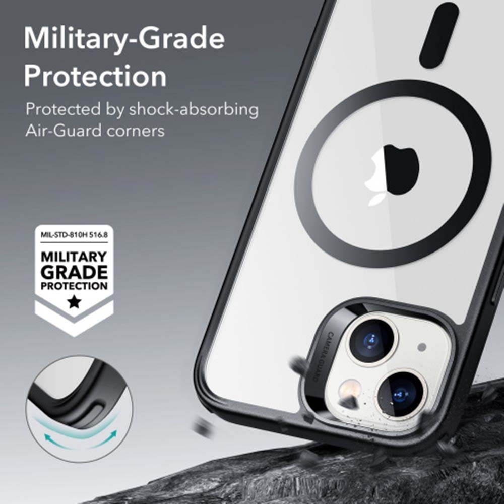 ESR CH HaloLock MagSafe Case - хибриден удароустойчив кейс с MagSafe за iPhone 14, iPhone 13 (прозрачен-черен)