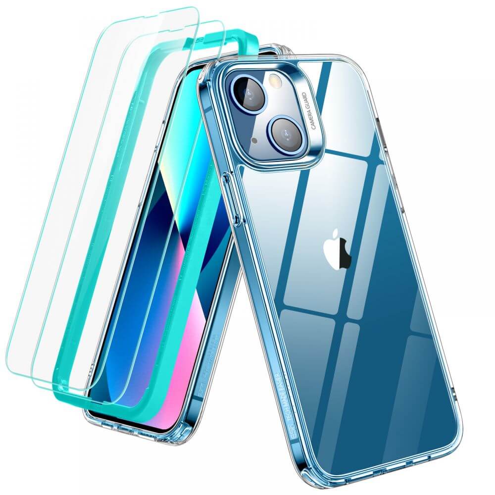 ESR Classic Hybrid Protection Set - хибриден удароустойчив кейс и 2 броя стъклено защитно покритие за дисплея на iPhone 13 (прозрачен)