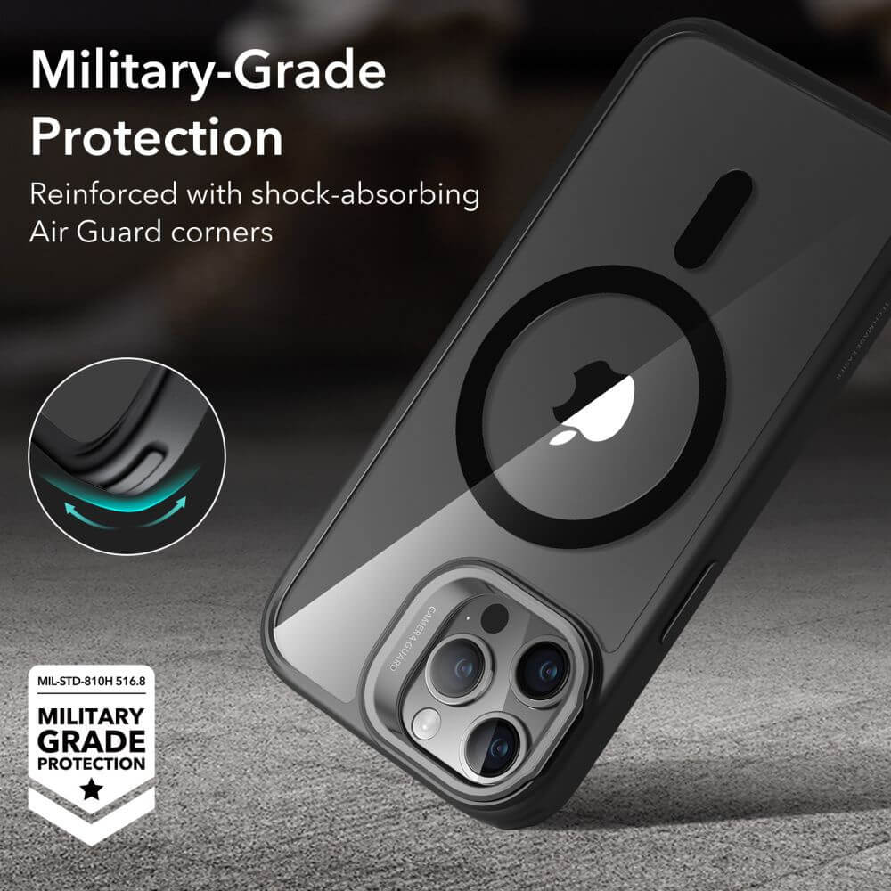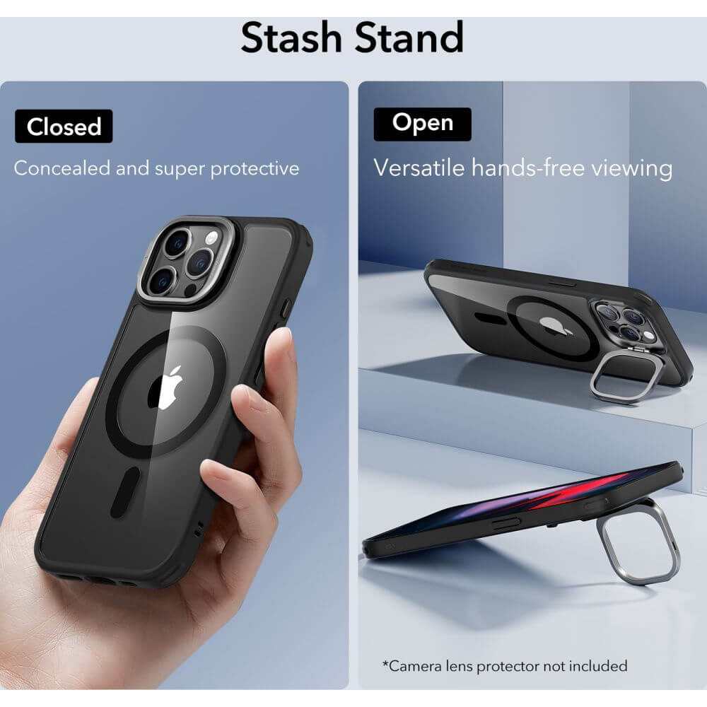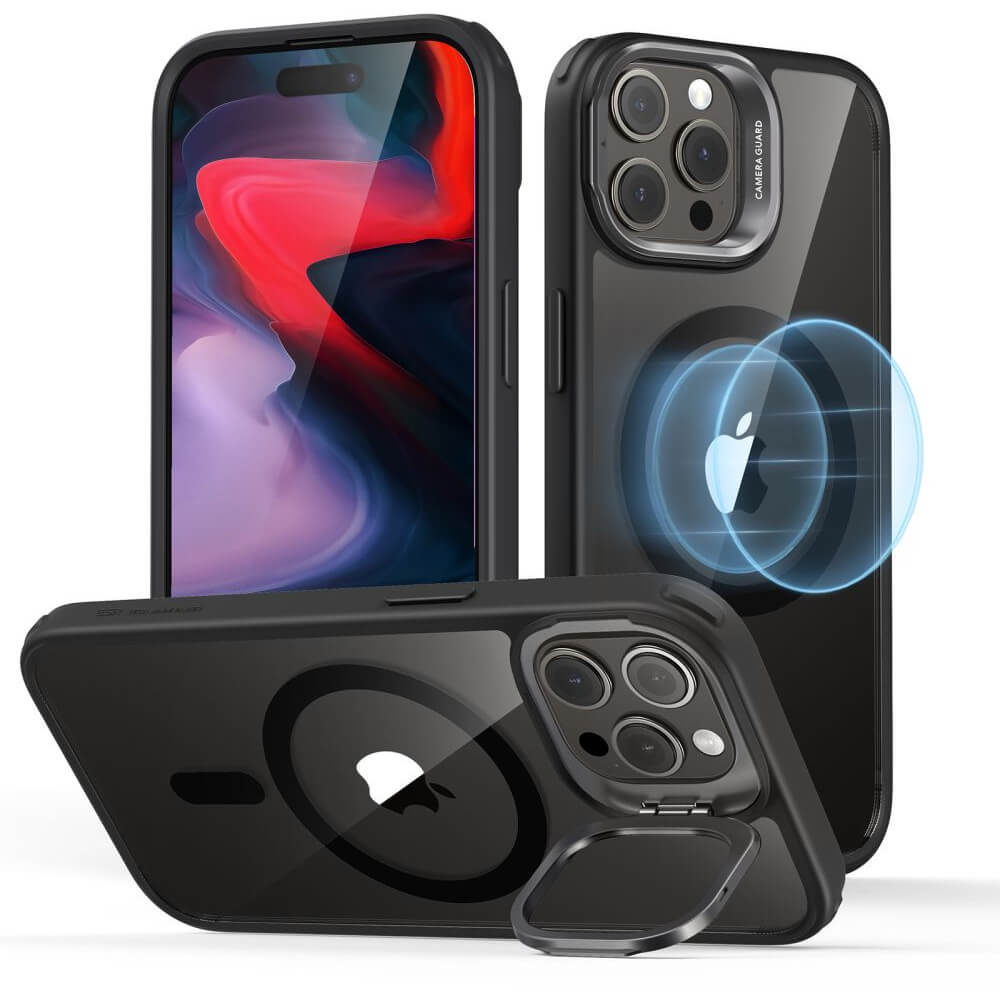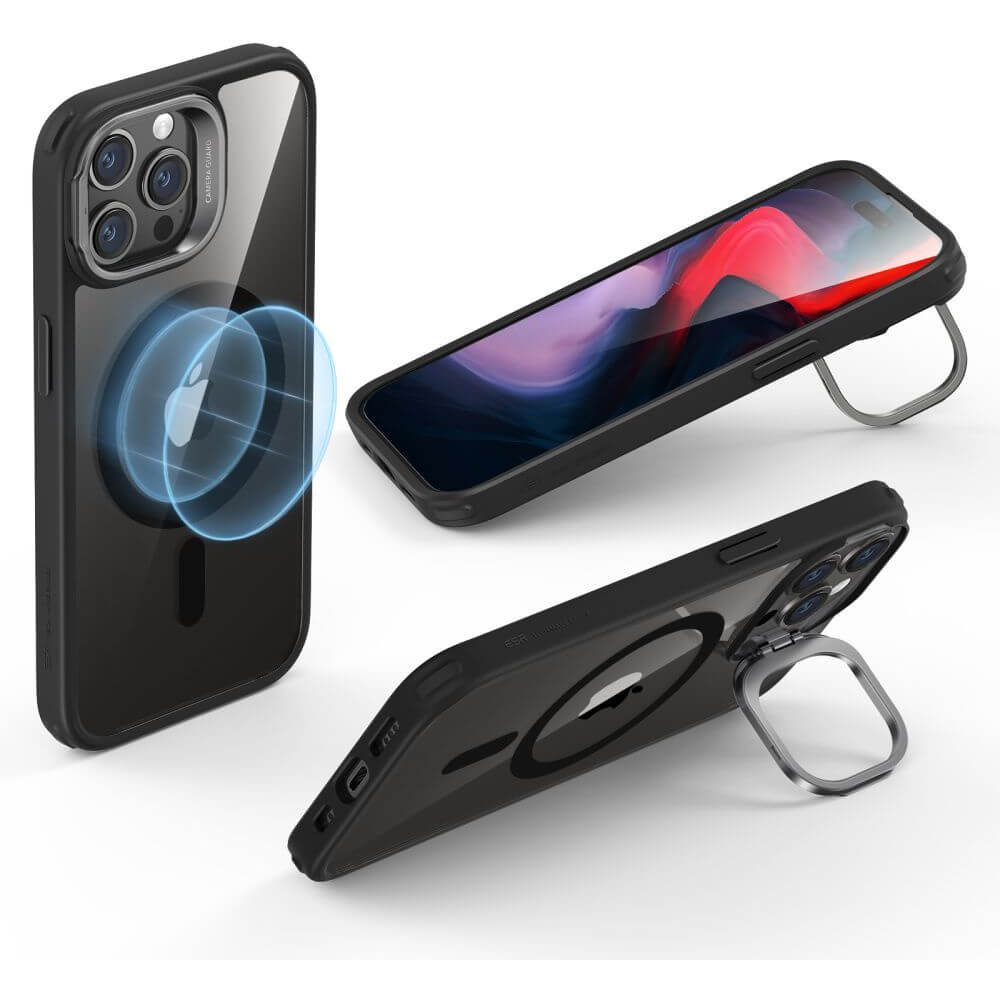ESR Classic Kickstand HaloLock MagSafe Case - хибриден кейс с висока степен на защита с MagSafe за iPhone 15 Pro Max (черен-прозрачен)