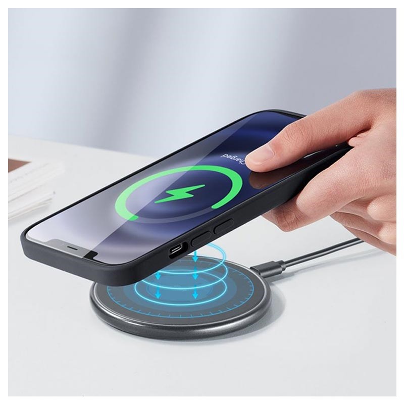 - Кейсът е снабден с магнит, благодарение на който е съвместим с MagSafe аксесоари. Това е изцяло нов стандарт за бързо и лесно свързване на аксесоари и безжични зарядни устройства