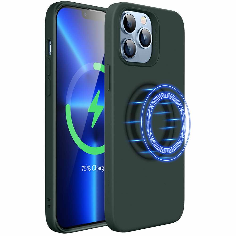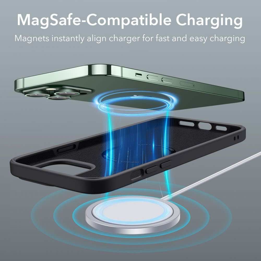 - Кейсът е снабден с магнит, благодарение на който е съвместим с MagSafe аксесоари. Това е изцяло нов стандарт за бързо и лесно свързване на аксесоари и безжични зарядни устройства