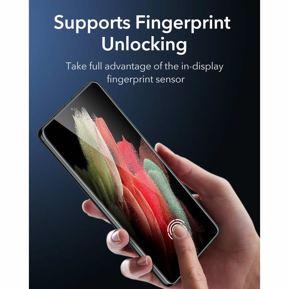 - Внимание: протекторът е съвместим с ултразвуковия пръстов отпечатък на Samsung. При необходимост, може да се наложи да добавите пръстовия отпечатък наново