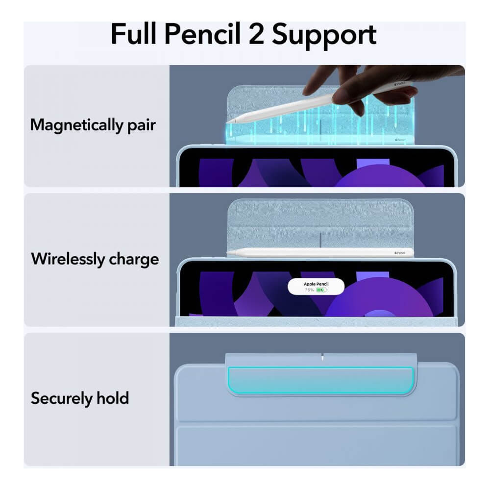 - Възможност за магнитно прикрепяне и зареждане на Apple Pencil 2 докато таблетът е в кейса