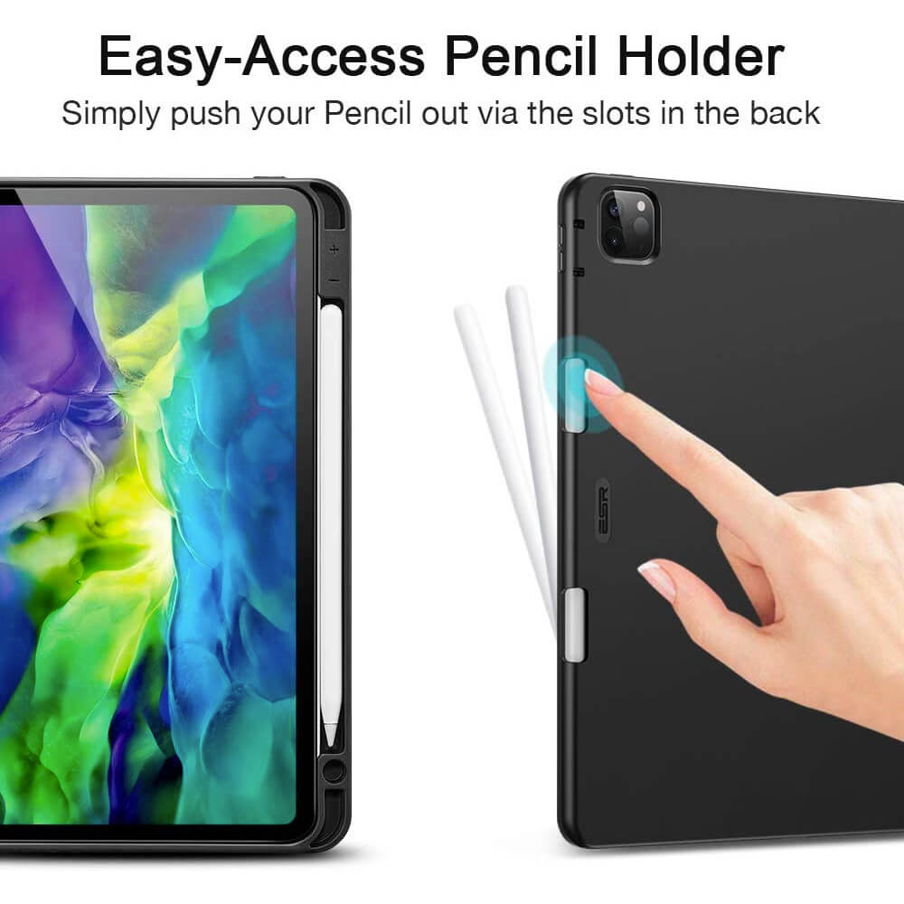 ESR Rebound Pencil Case - полиуретанов калъф с поставка и отделение за Apple Pencil 2 за iPad Pro 12.9 (2020), iPad Pro 12.9 (2018) (черен)